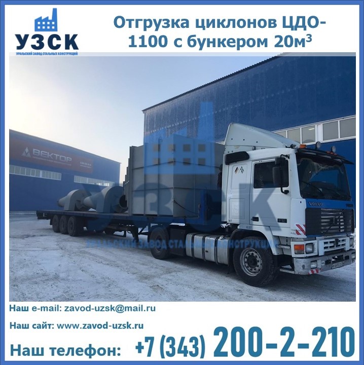 Циклоны ЦДО-1100 с бункером на 20 кубов были отгружены в декабре 2018 года в г. Новосибирск Уссурийск.