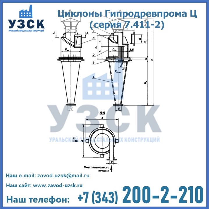 Циклоны Гипродревпрома Ц (серия 7.411-2) высокого качества можно купить в компании «УЗСК» в Уссурийске. Наши специалисты предоставят всю необходимую информацию информацию и помогут с выбором модели циклона. Подробные технические характеристики, конструкцию, параметры, ассортимент и стоимость продукции можно также найти на сайте УЗСК.