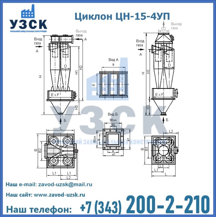 Завод «УЗСК» в Уссурийске предлагает большой выбор циклонов ЦН-15-800×4УП и прочих устройств, полностью укомплектованных и готовых к эксплуатации. Мы гарантируем соответствие оборудования всем требованиям ГОСТ и ТУ, износостойкость и высокую производительность предлагаемого оборудования. Уральский Завод Стальных Конструкций изготавливает и продает надежное, эффективное и производительное оборудование, имеющее длительную гарантию и большой эксплуатационный ресурс. Если требуется изготовить циклон нестандартных размеров, то такой вариант выполнения заказа тоже предусмотрен, так как предприятие имеет собственные производственные площади и надежных поставщиков. На все поставляемое или производимое оборудование имеются чертежи и прочая техническая документация. Заказать и купить циклоны или прочее оборудование высокого качества и по доступной цене можно через наш сайт или по указанному в разделе «Контакты» телефону.