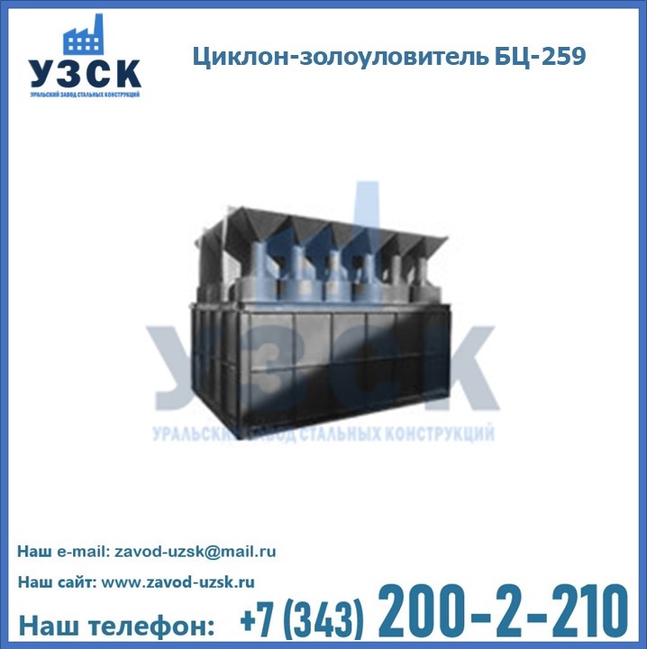 Если вы планируете купить то или иное оборудование, например, циклоны-золоуловители БЦ-259, то рекомендуем заказать данный товар на сайте УЗСК. Мы производим и реализуем продукцию высокого качества по приемлемой цене. Эксперты Уральского Завода Стальных Конструкций в Уссурийске проконсультируют вас по всем вопросам, помогут сделать выбор и оформить заказ без лишних временных затрат. Мы гарантируем соответствие нашей продукции всем требованиям ГОСТ и ТУ, а также износостойкость и высокую производительность предлагаемого оборудования. Если требуется изготовить циклон нестандартных размеров, то такой вариант выполнения заказа тоже предусмотрен, так как предприятие имеет собственные производственные площади и надежных поставщиков. На все поставляемое или производимое оборудование имеются чертежи и прочая техническая документация. Заказать и купить циклоны или прочее оборудование высокого качества и по доступной цене можно через наш сайт или по указанному в разделе «Контакты» телефону.