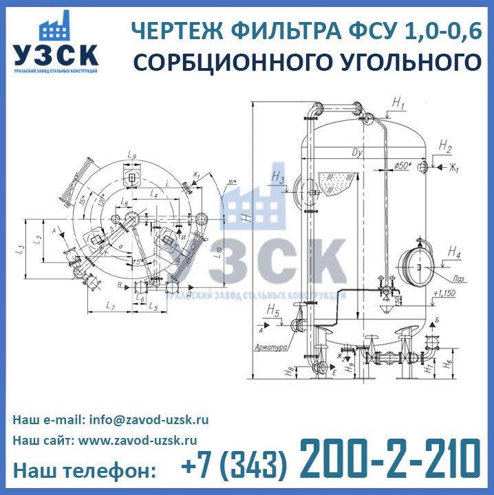 Наш завод (Уральский завод стальных конструкций) является производителем угольных фильтров, сам осуществляет изготовление и реализацию выпускаемой продукции. Приобретая фильтры ФСУ-1.0-0.6 в Уссурийске от производителя, Вы приобретаете оборудование без наценок всевозможных посредников, а также значительно экономите свое время. Фильтры ФСУ1.0-0.6 завода УЗСК – это гарантия качества, кратчайшие сроки изготовления и цена, которая Вам понравится.