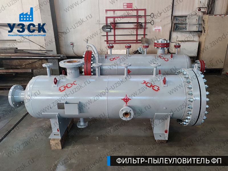 Фильтры-пылеуловители ФП от ООО «УЗСК» представляют собой вертикальные или горизонтальные цилиндрические аппараты, оснащенные многоступенчатой системой сепарации: