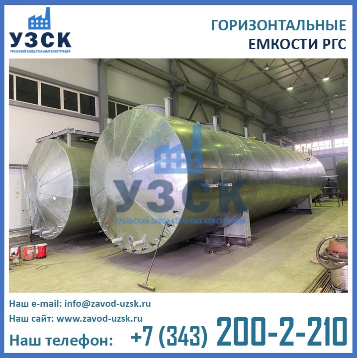 Завод «УЗСК» производит различные типы резервуаров горизонтальных стальных цилиндрических марки РГС