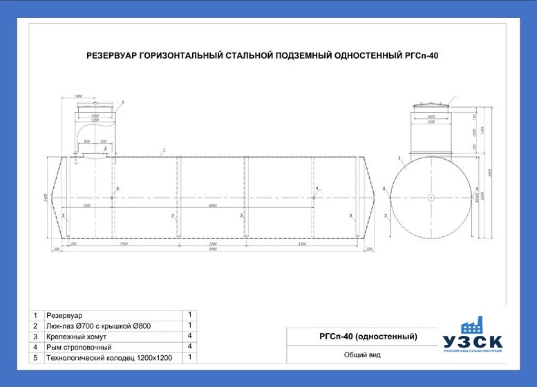 РГСДн-40: горизонтальный резервуар двустенный наземного расположения;